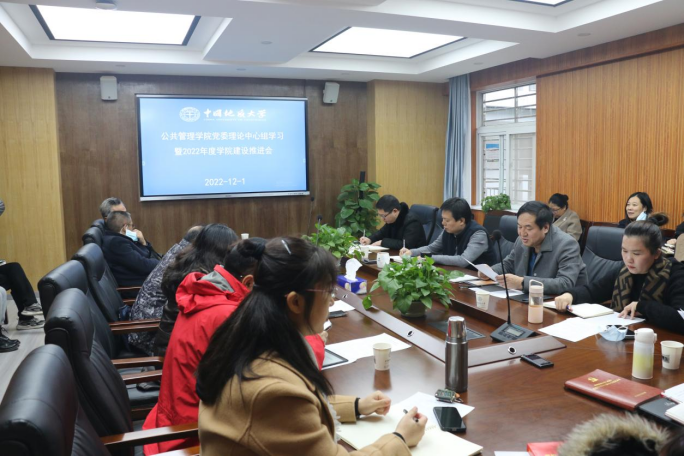 12月1日,太阳成集团tyc234cc主页在北一楼227会议室召开党委理论学习中心组学习(扩大)会议,学习贯彻党的二十大精神,研究推进公司高质量发展。公共管理公司党委理论学习中心组成员、教职工党支部书记、各系主任、院直老师参加。