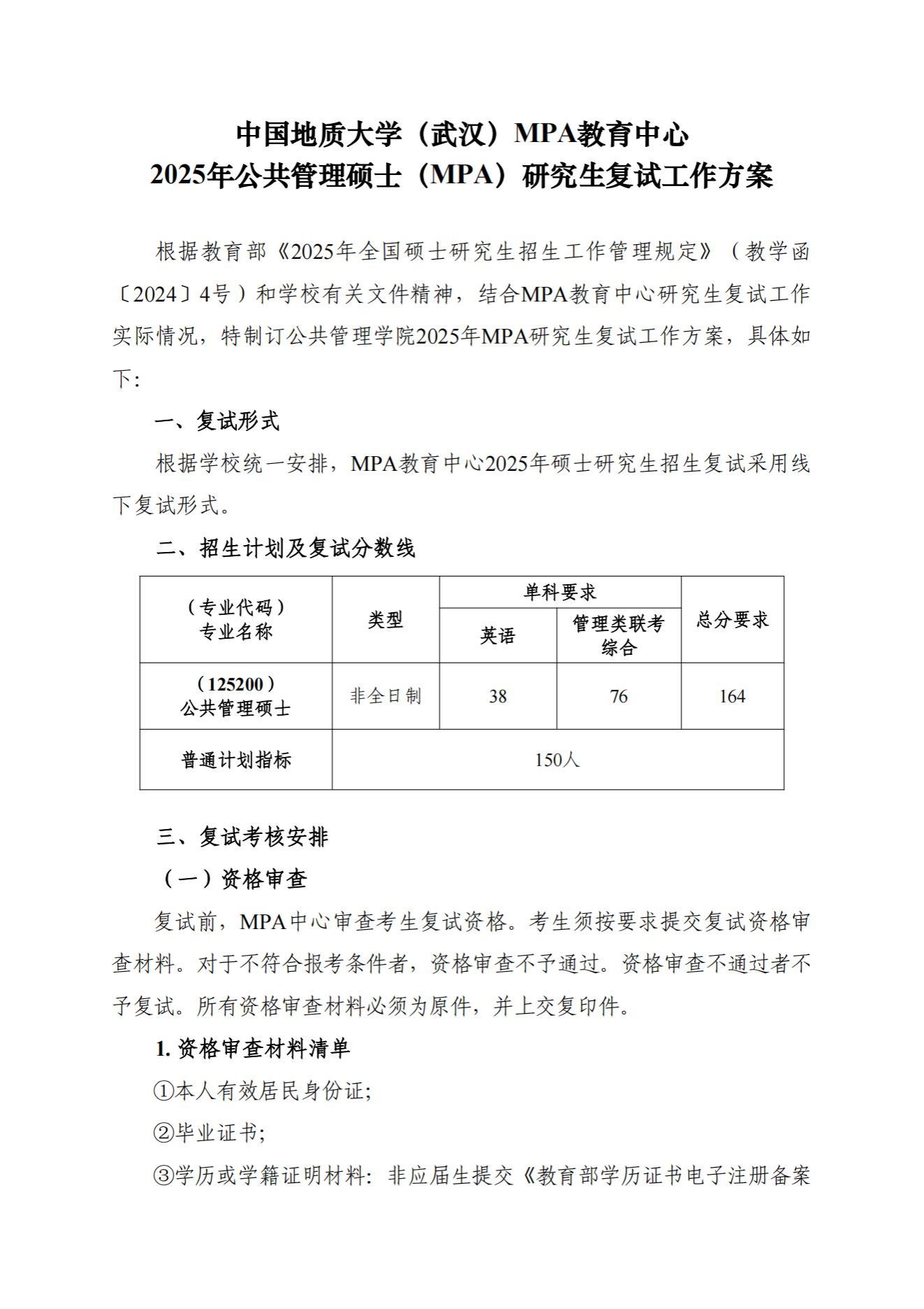 太阳成集团tyc234cc主页(武汉)MPA教育中心2025年公共管理硕士(MPA)研究生复试工作方案