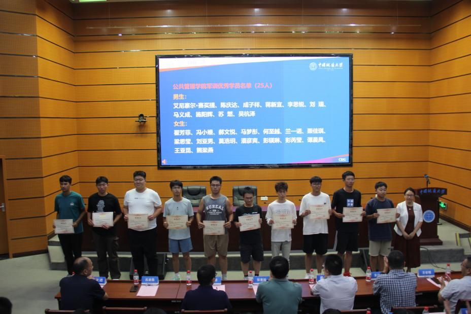 辅导员罗智霖宣读受表彰的军训优秀个人名单,朱江洪、吕凌燕为公司2024年军训优秀个人颁发荣誉证书。