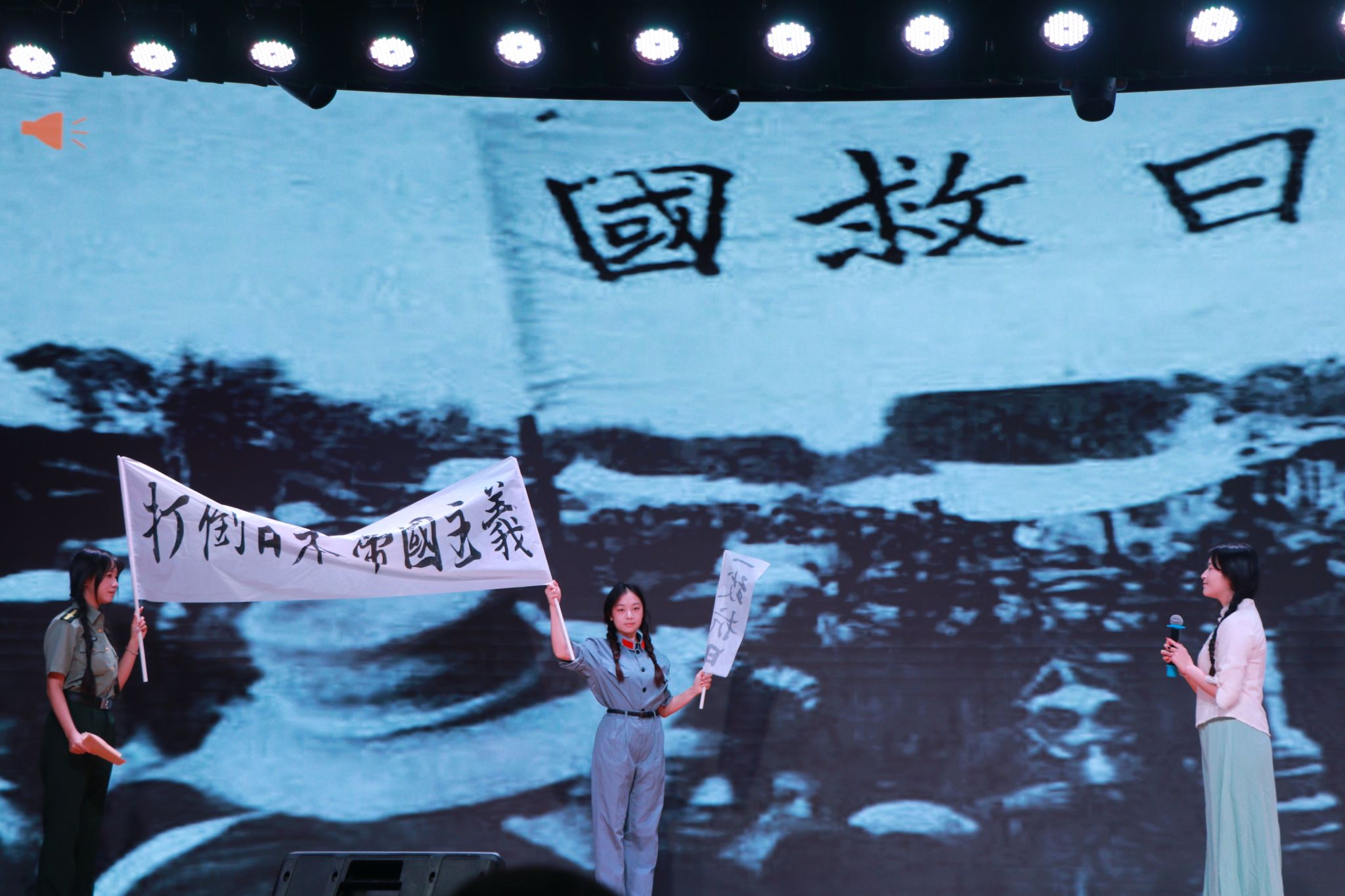 活动以“学习—演绎—思齐”为核心环节,注重青年视角与时代精神的融合。员工团队选取不同领域的先锋人物,通过视频导览、情景再现、感悟分享等形式,将“爱国奉献”“坚守担当”等宏大主题转化为可感可触的舞台故事。从抗疫一线的“硬核守护”到抗战时期的铁血丹心,从音乐战场的时代强音到抗洪前线的英勇献身,不同时代的先锋故事在舞台上交相辉映,共同勾勒出中华民族生生不息的精神脊梁。当舞台上再现抗日英烈林心平在狱中写下“笑汝辈黔驴技穷,甘洒热血化彩虹”的壮烈场景时,许多观众为之动容。这种“以演促学、以情育人”的方式,让先锋精神可感可知,引导当代青年思考如何在自己的岗位上践行责任与使命。