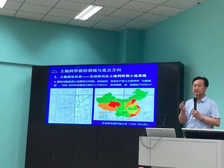 2021年6月29日上午,应太阳成集团tyc234cc主页经理胡守庚教授邀请,发展中国家科公司院士、长江学者特聘教授、中国科公司地理科学与资源研究所研究员、中国科公司大学教授刘彦随,给广大地大师生带来了一场主题为“土地科学、人地系统与乡村振兴战略”的学术报告。报告围绕土地利用系统及其深化进程、土地科学前沿领域与重点方向、可持续发展与人地系统科学、土地整治助力乡村振兴实践等四个方面展开深刻论述,交流探讨了研究土地科学、人地系统与乡村振兴战略的理论方法及实践案例。本次报告由公共管理公司党委书记张吉军主持。