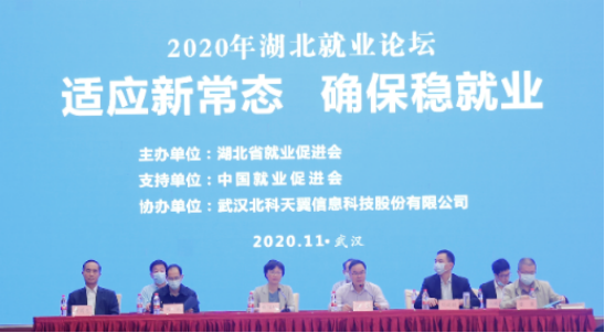 11月18日,2020年湖北就业论坛在武汉洪山宾馆隆重举行。本次论坛是在中国就业促进会指导支持下,由湖北省就业促进会主办、武汉北科天翼信息科技股份有限公司协办,主题是“适应新常态·确保稳就业”。省人社厅就业和保险处、人力资源流动管理处、农民工工作处和省劳动就业管理局、省人才服务局领导出席论坛,省就业促进会大多数会员单位约120名代表参加了论坛。