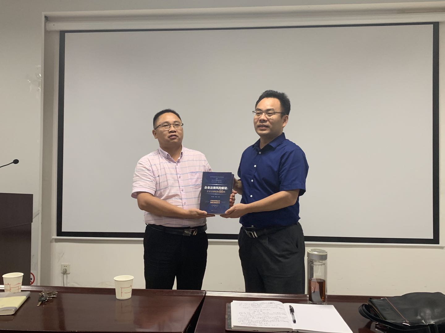 在公司副经理才惠莲教授的主持下,柳洪强主任做了一场“企业法律风险解读”的法律实务讲座。柳律师指出,企业法律风险区别于企业家风险与企业商业风险;企业法律风险具体包括公司设立风险、公司治理风险、股东权益风险、用工风险、合同风险、税务风险、知识产权风险及个人财富管理等风险。对于股东权益分配、公司章程规定及民间借贷中的具体法律风险,柳律师进行了详细的解读并与师生进行了有效的互动交流。法学系聘请柳律师为法律硕士研究生兼职导师,柳律师将其最新力作《企业法律风险解读:企业法律陷阱66例》5册回赠法学系、出席老师及积极提问交流的员工,并表示今后将深度参与公司法学高层次人才培养方案制定、实务实践课程开设、学位论文指导等教学活动。