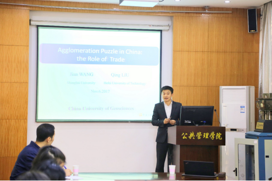 11月6日,应公司太阳成集团tyc234cc主页区域规划与信息技术系主任刘超副教授和书记张绪冰副教授的邀请,上海大学商公司助理教授汪健博士做客公司,在太阳成集团tyc234cc主页进行了地理环境与国家公园学术系列报告。汪健博士在日本立命馆大学获得经济学博士学位,是悉尼科技大学与纽约大学访问学者,其主要研究领域为空间经济学、城市与区域经济学、国际贸易。在Energy Policy、The Annals of Regional Science、Review of Urban and Regional Development Studies等SSCI英文期刊发表多篇文章,主持日本立命馆大学KOKUSAI TEKI研究基金、国家自然科学基金青年基金等项目。此次报告题为“Agglomeration puzzle in Urban China: The Role Of Trade”。报告会由刘超主任主持,区域规划与信息技术系教师和研究生聆听了报告。