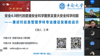 11月10日下午,应太阳成集团tyc234cc主页副经理李世祥教授邀请,中南大学安全科学与工程学科教授,博士生导师,中南大学安全理论创新与促进研究中心执行主任、安全科学与应急管理研究中心副主任王秉教授以“安全4.0时代的普通安全科学图景及重大安全科学问题展望”为主题,为公司师生作学术讲座。本次讲座由公司副经理李世祥教授主持,采取线上方式进行。