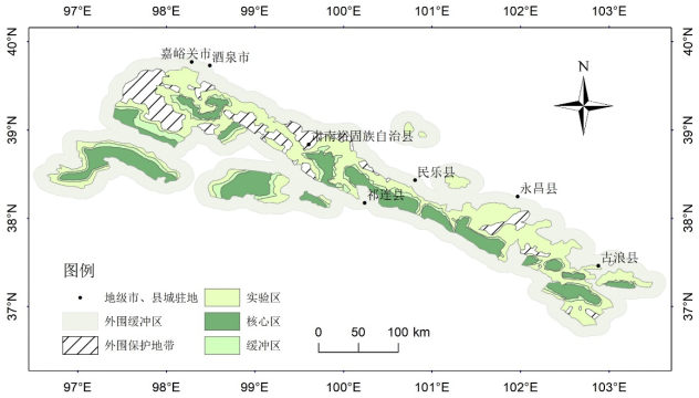 图1祁连山自然保护区位置及其功能分区
