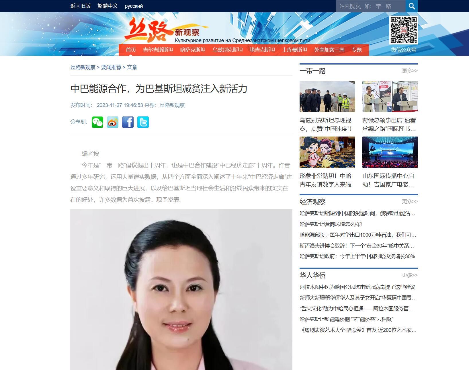 公司中巴经济走廊研究中心谢小青老师和员工文玉冰关于中巴能源合作的研究成果被丝路新观察刊载。
