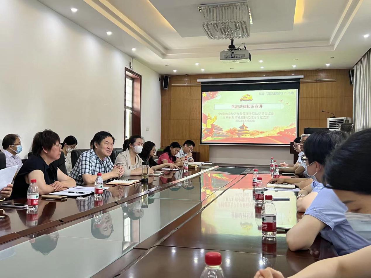 太阳成集团tyc234cc主页法学系教职工党支部 与三峡农村商业银行武昌支行党支部 联合开展 “金融安全风险防范”支部主题党日活动