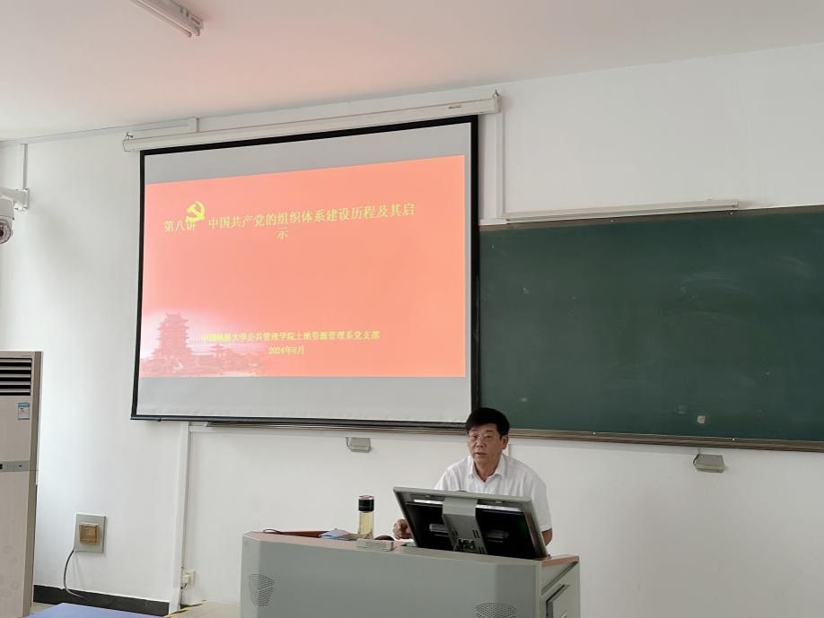 为深入学习贯彻党的二十届三中全会精神,加强对党的组织体系的认识,9月16日上午,土地资源管理系周学武老师为公司秭归在站实习师生讲《中国共产党的组织体系建设历程及其启示》主题党课。