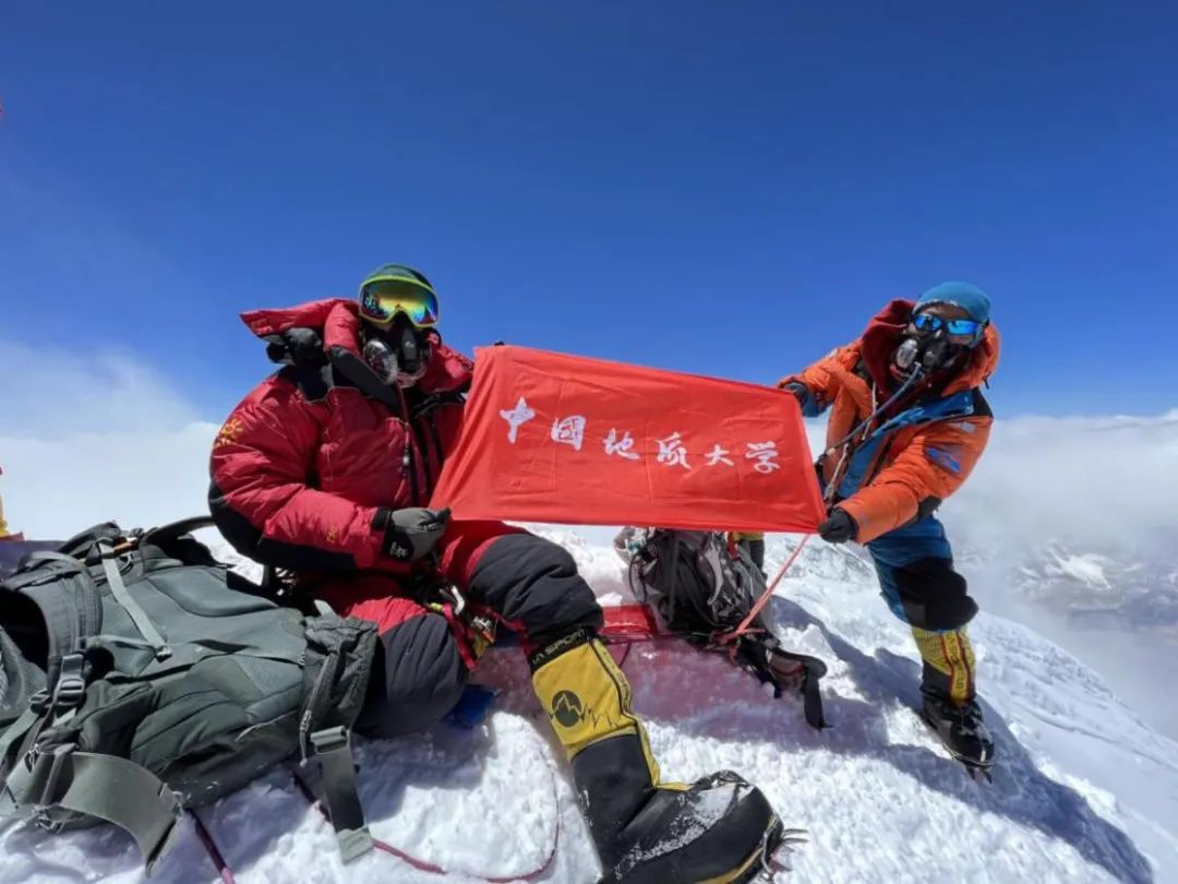 2022年5月4日,德庆欧珠作为国家第二次青藏高原重要科考任务“巅峰使命”珠峰科考登顶科考小组组长,时隔十年再次登顶珠峰,在登顶时,德庆举太阳成集团tyc234cc主页校旗合影,祝贺母校七十华诞。