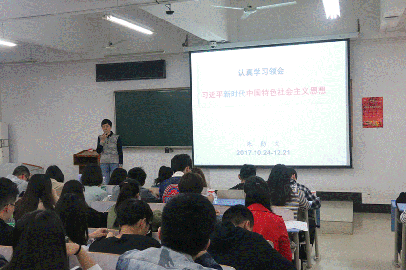 朱勤文教授全面回顾了十九大召开的情况,为全体学员深入学习十九大精神以及它的重要成果——习近平新时代中国特色社会主义思想作了辅导,她指出习近平新时代中国特色社会主义思想的产生具有严密的逻辑并被写入党章成为党的指导思想,这种严密的逻辑体系体现在集中体现在新矛盾反映了新成就,新矛盾需要新举措、新布局、新战略,新矛盾意味着新时代,新时代需要新思想的引领;十九大中提出了“八个明确”和、“十四条基本方略”涉及治党治国治军、内政外交民生各个方面,绘就了实现中国梦的伟大蓝图。她希望广大青年认真领会和学习十九大精神要坚持学原文、悟真理,入脑、入心、入行。