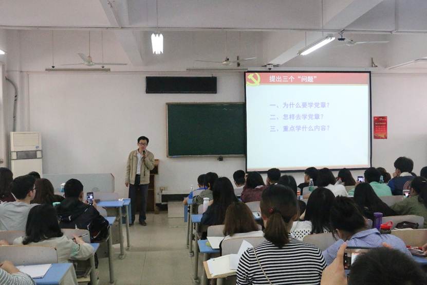 刘治国老师从为什么学、怎么样学、重点学什么三个方面带领学员全面学习了十九大通过的《中国共产党党章》,带领学员学习了党的性质、目标、组织、纪律等内容,他指出党章是党内的根本大法,我们入党积极分子理应学习党章、遵守党章、贯彻党章、维护党章,以党员标准严格要求自己,争取早日成为一名光荣的中国共产党党员。