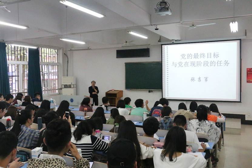 张吉军教授以“党的最终目标与党在现阶段的任务”为主题为全体学员授课,他指出党的最终目标是实现共产主义,并指出共产主义是最理想的社会制度,是社会发展的必然趋势,是空前伟大而艰巨的事业。他结合党的十九大报告提出的目标,着重阐述了新时期经济社会的发展目标和发展理念。最后,他指出,共产党员要为实现党的纲领而奋斗,要牢固树立共产主义理想,脚踏实地为实现理想而奋斗。