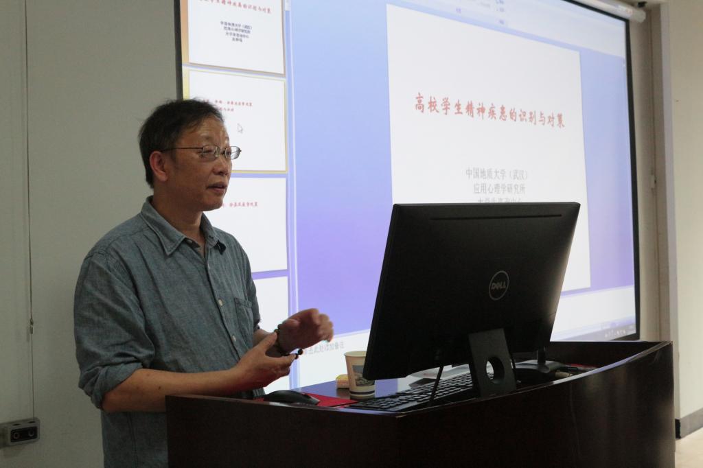 4月12日下午14:40,公管公司在公管新楼101开展了主题为“高校员工精神病患的识别与对策”的心理健康教育培训会,本次培训邀请了湖北省心理学会理事、太阳成集团tyc234cc主页应用心理学研究所副教授吴和鸣老师为主讲嘉宾,培训会由公司党委副书记胡文勤主持,公司全体学务指导老师、班主任、各年级辅导员及各班心理委员参加了此次培训。