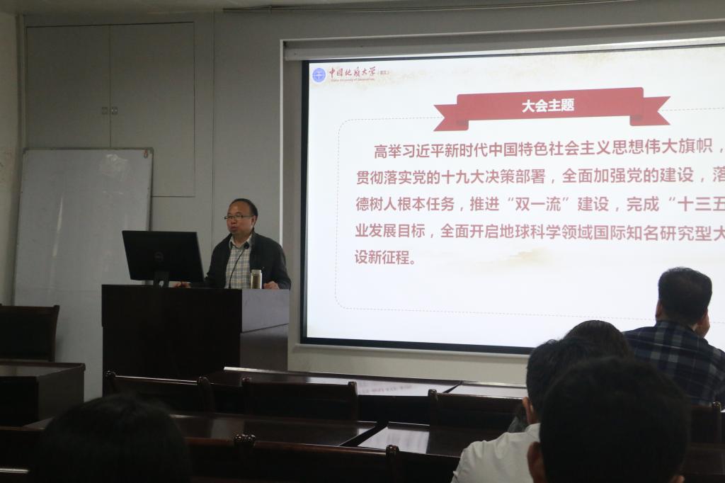 会议开始,张吉军书记首先对公司《高举习近平新时代中国特色社会主义思想伟大旗帜,全面开启地球科学领域国际知名研究型大学建设新征程》的报告做了大致介绍,着重介绍了公司的“三步走”发展战略。