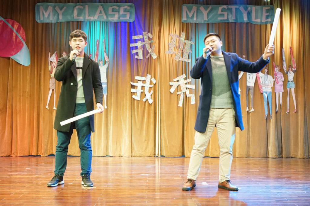 班级风采展示后,2018级辅导员吴波和175181班曾喜龙同学共同演唱《爱情转移》,现场观众跟随音乐旋律挥舞荧光棒,齐声合唱,气氛温暖融洽,将现场氛围推向高潮。