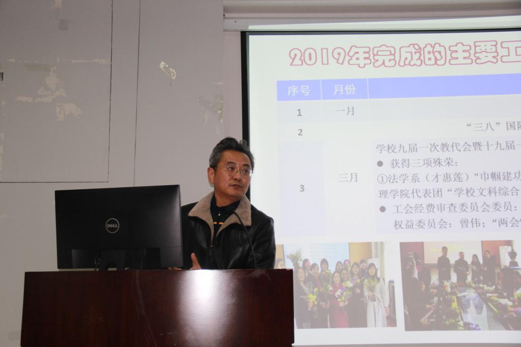 工会主席曾伟作公司工会2019年工作报告。公司工会立足于“参与、维护、建设、教育”四项基本职能,在落实各项制度、思想文化教育、教工之家建设、开展文体活动等方面都较好的完成了全年的工作任务,并获评校级“模范分工会”。