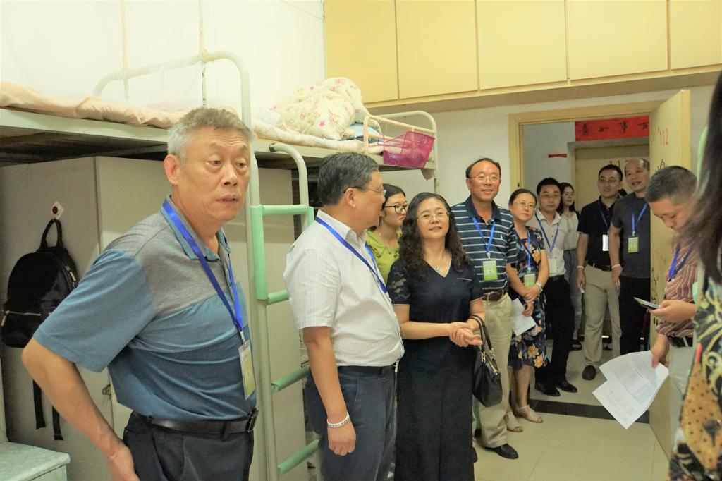 王忠副经理和刘国华副书记对北区19栋和23栋本科生新生宿舍进行了走访。每到一间宿舍,两位老师都会询问新生是否住得习惯、有需求可以及时联系公司,同时也叮嘱同学们要以学业为重,尽快适应老员工活。