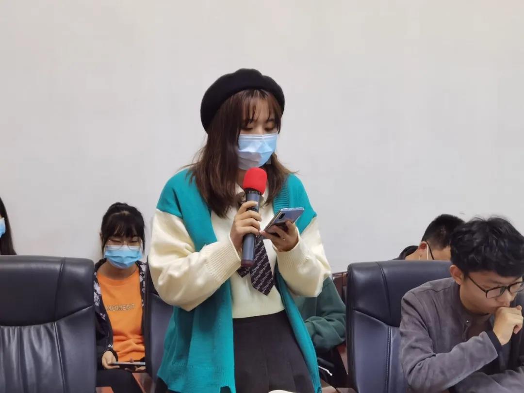 第五项,员工自由提问环节。现场同学针对专业学习方面问题进行提问,老师们都一一耐心地予以答复,权益服务中心的同学们也进行了详细的记录。
