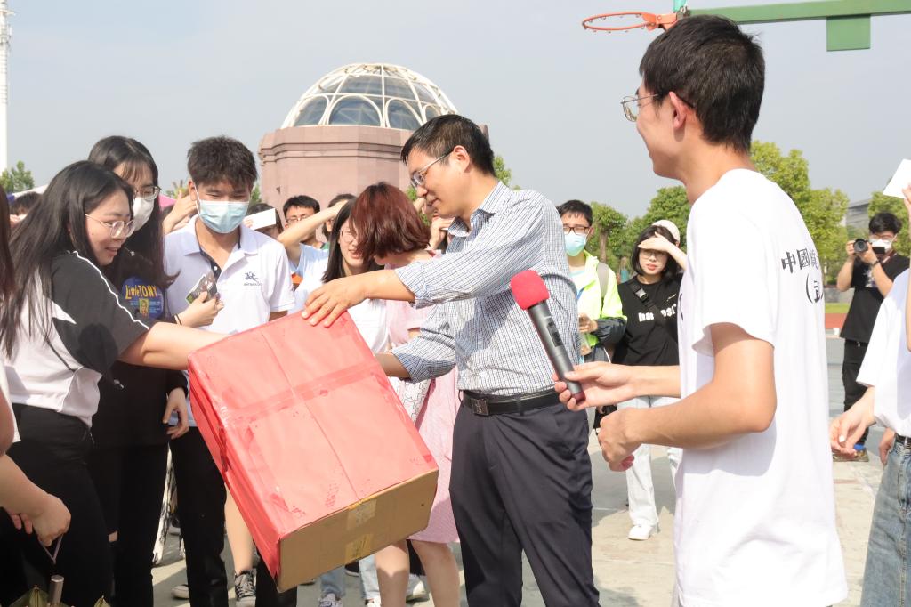 趣味活动结束后,便是激动人心的抽奖环节,本次活动设置了三等奖五个,二等奖三个,一等奖一个,分别由胡学湉部长、李文伟老师、刘书记来抽取。抽奖完毕后,获奖同学与老师进行了合影留念。至此,本次“管风情”系列活动圆满结束。