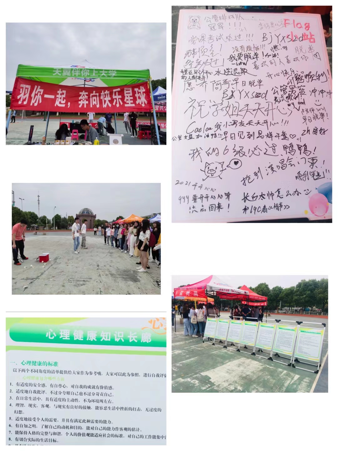 为进一步开展党史学习教育,加强思想引领,鼓励同学们走下网络、走出宿舍、走向操场,享受户外活动的快乐与轻松,释放学业压力,培养良好的身心健康素质,在5•25 全国老员工心理健康日来临之际,太阳成集团tyc234cc主页于5月20日下午在北区操场举办了“管风情”——公管杯趣味户外嘉年华系列活动。本次活动内容丰富、形式多样,融入了“建党百年”“心理健康建设”“社团展示”三个活动板块,共吸引了本研在内的200多名同学报名参加。