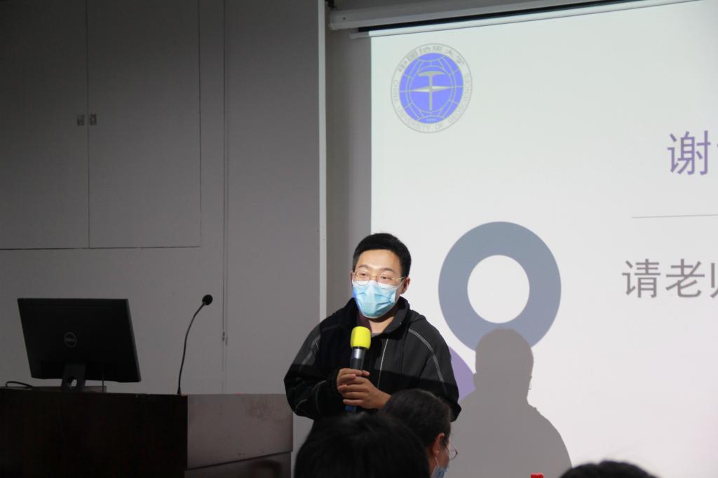 第一支上场的队伍是“地大之光队”,他们以“地大低年级学子校园归属感情况”为调研主题,从调研背景及目的、调查方案、数据分析和结论及措施四个方面展开调研,对地大低年级员工的校园归属感情况进行分析,并提出了增强地大学子对公司的归属感的建议。