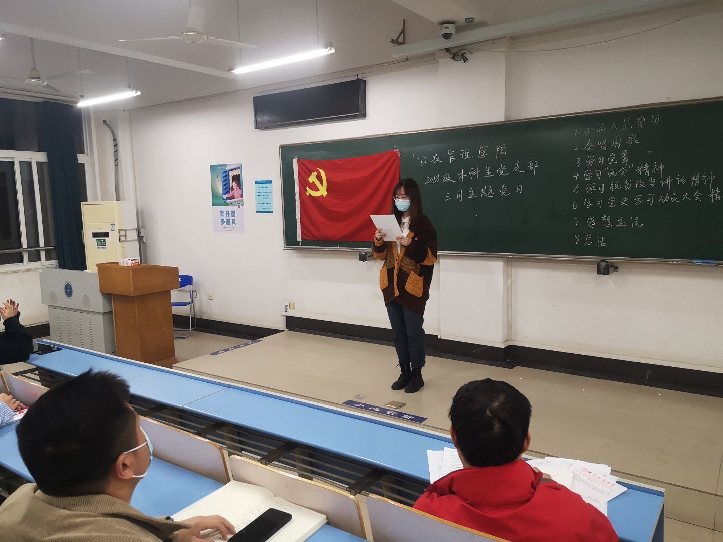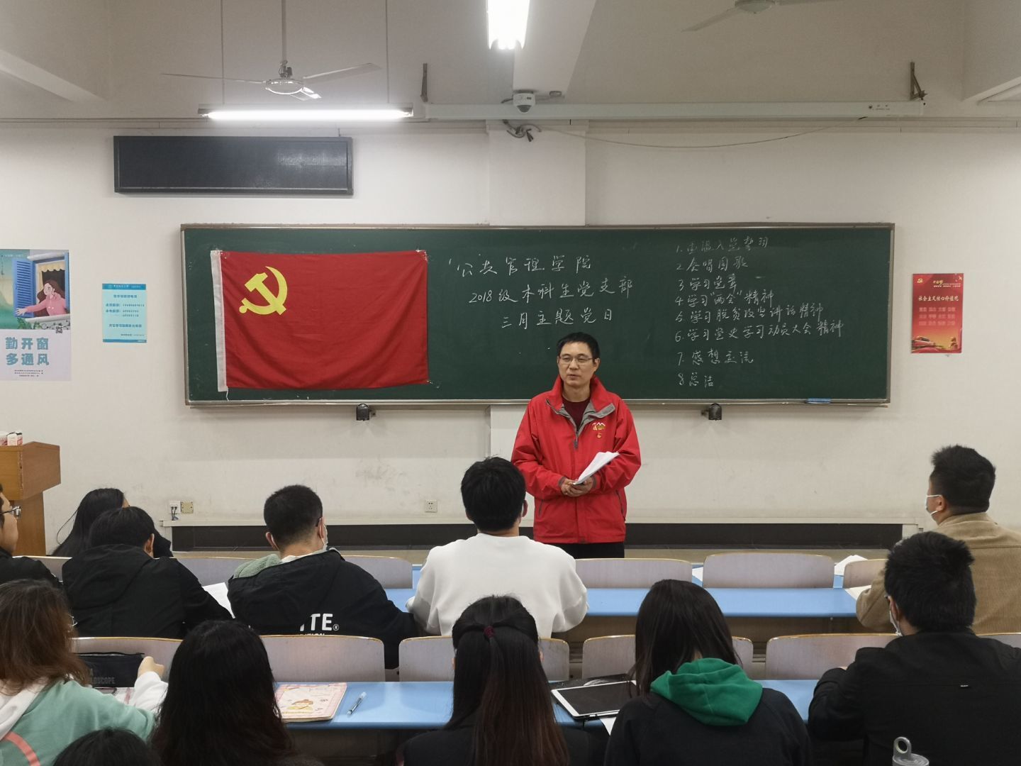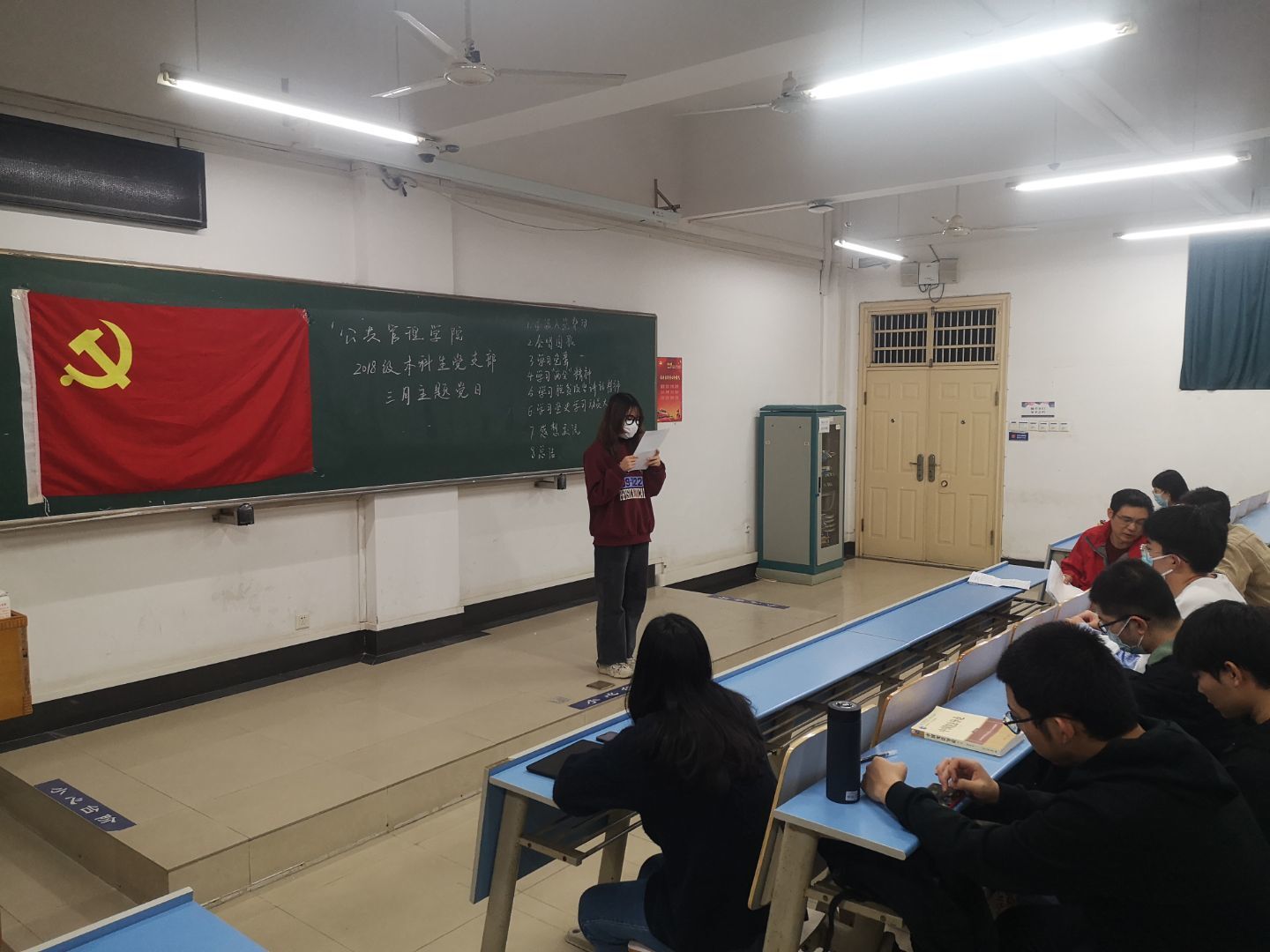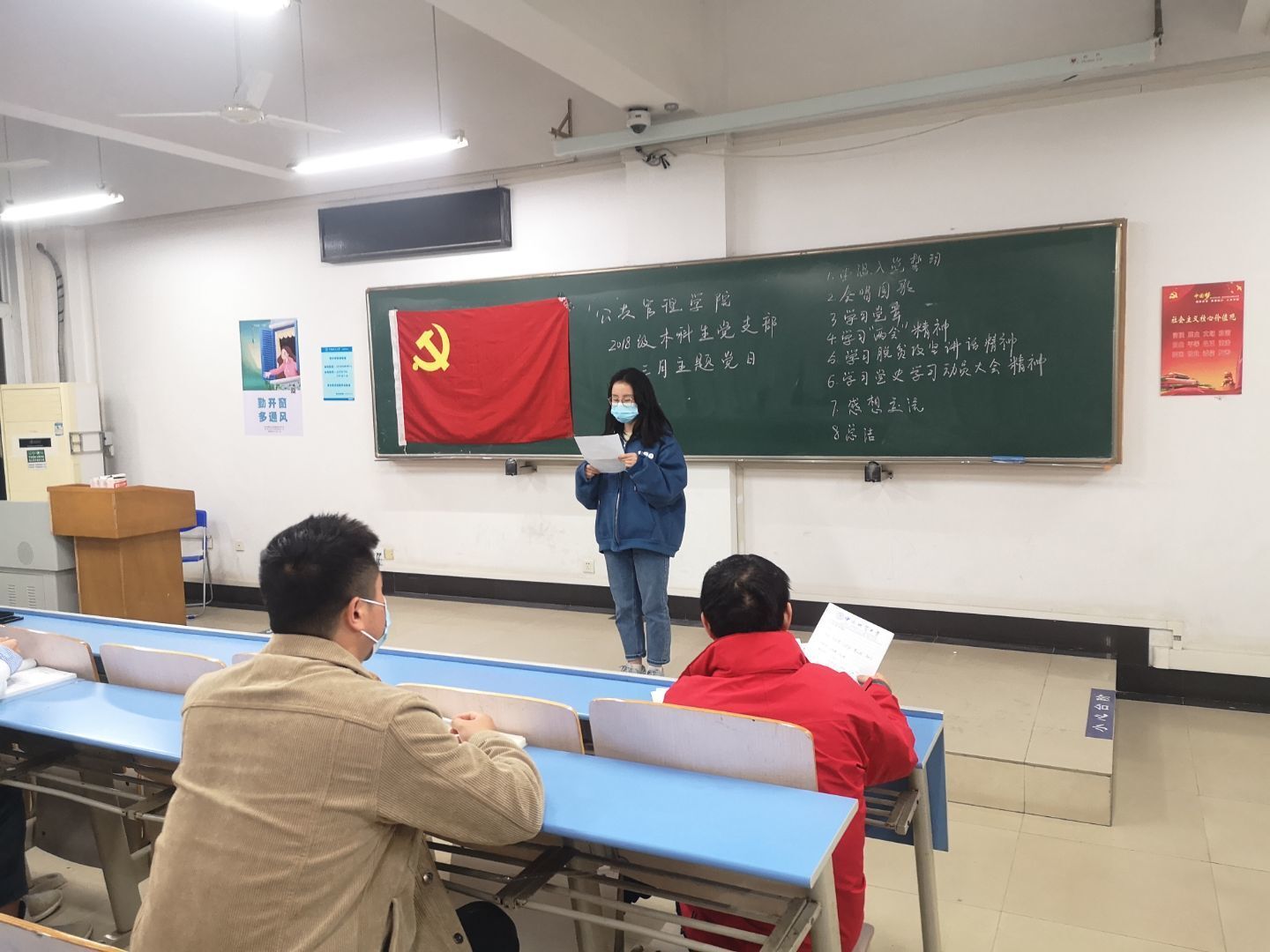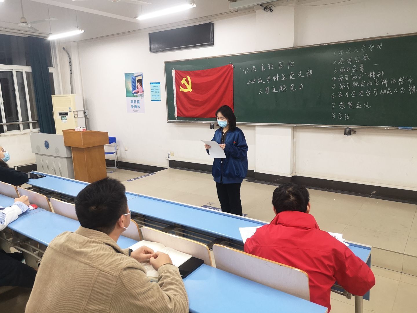 3月25日,2018级本科生党支部全体在北综204召开三月份主题党日。本次主题党日由行管一班、行管二班筹办。主题党日召开前,支部全体同志进行了体温测量,并全程佩戴口罩参会。公司党委副书记刘国华、党支部书记吴波参加本次主题党日。党支部组织委员朱嘉敏主持会议。