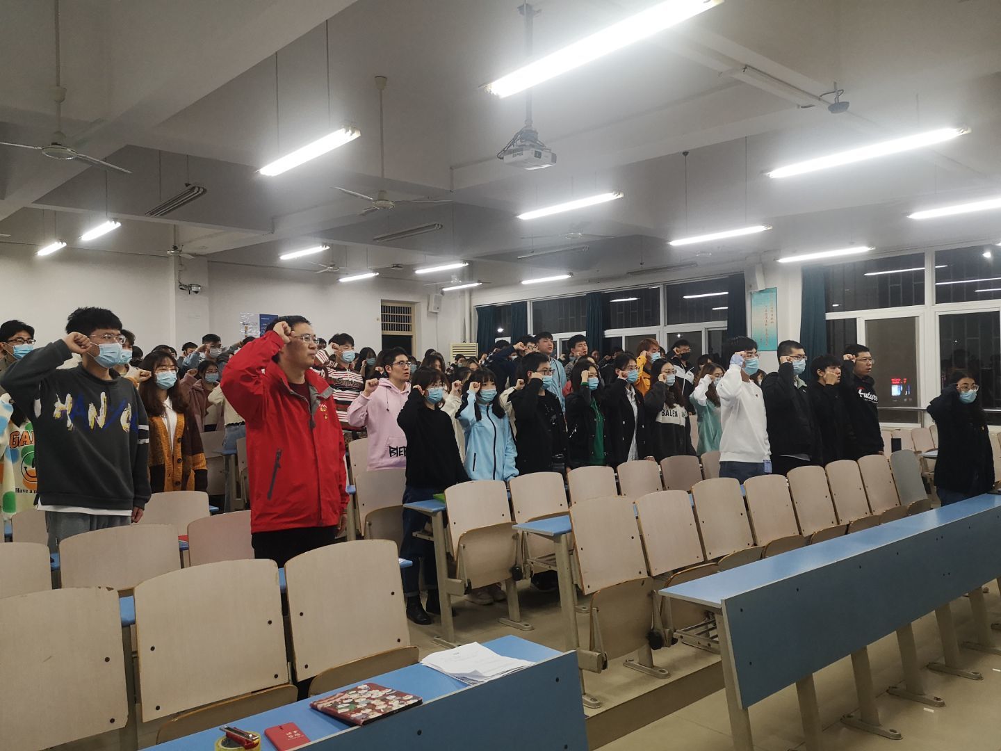 会议开始,朱嘉敏同志组织全体同志齐唱国歌并宣誓。之后,朱嘉敏带领全体同志学习《中国共产党章程》第七章。