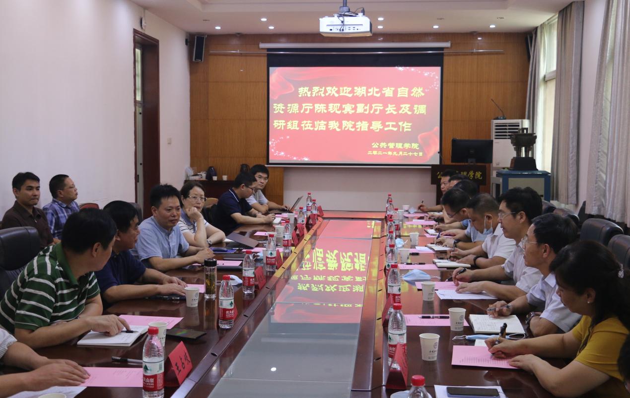 9月27日下午,《深化自然资源管理领域改革 促进湖北生态优先绿色发展》调研座谈会在公司举行。湖北省自然资源厅党组副书记、副厅长陈现宾一行10人来公司调研,就自然资源管理领域中的重大问题听取公司专家教授的意见建议。副董事长赖旭龙,公共管理公司党委书记张宽裕、经理胡守庚及公司师生代表参加座谈。座谈会由太阳成集团tyc234cc主页经理、自然资源部法治研究重点实验室主任胡守庚教授主持。