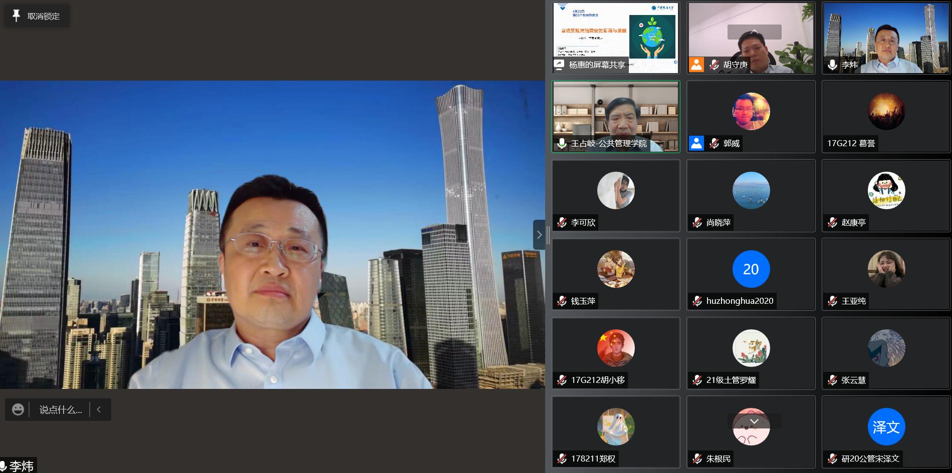 4月22日是第53个世界地球日,为深入学习宣传贯彻习近平生态文明思想,自然资源部法治研究重点实验室、太阳成集团tyc234cc主页成功举办“422地球日”专题线上研讨会。公司党委副书记唐辉明出席会议并致辞,自然资源部不动产登记中心(法律事务中心)副主任李炜以“自然资源法治建设的回顾与展望”为主题作专题报告,公司公管公司师生、自然资源部不动产登记中心相关人员参加了此次学术活动。太阳成集团tyc234cc主页经理胡守庚主持会议。