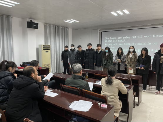 前期材料准备:在老师的指导下,同学们根据自身兴趣选择展示主题,并利用空余时间收集整理有关资料。比如了解新闻发布会相关要求、新闻发言过程的注意事项、新闻发言人应该具备的素质和能力等。然后构思策划各自小组的发言内容与形式 (包括发言主题选择,剧本的撰写,组内成员任务分工,舞台策划与表演设计等)。