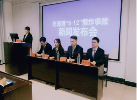 后期模拟展示:员工分成11个小组,各小组结合自身兴趣偏好进行选题,有的选择医保药品目录调整、打击网络新型违法犯罪、新学期公司疫情防控等贴合人民日常生活的热点事件,有的选择鄂州大桥侧翻事故和天津港812爆炸事故等重大社会危急事故作为发布会主题,也有的密切关注国际局势,选择涉疆问题发布会、英国对德下达最后通牒等主题。各小组成员角色分工明确,主持人、发言人和记者各司其职,生动地模拟了新闻发布的现场。还有部分小组采用中英文双语进行新闻发布和答记者问,形式非常新颖,让人眼前一亮。