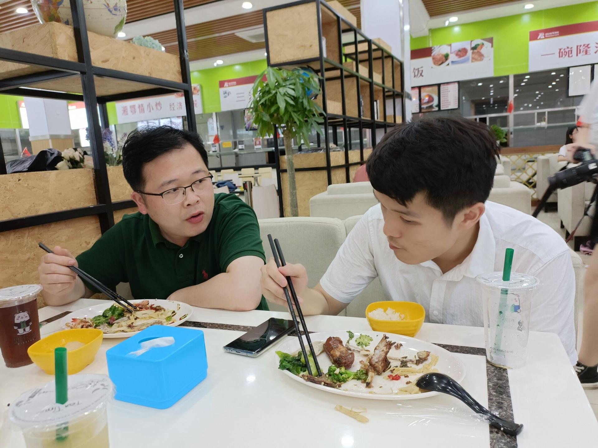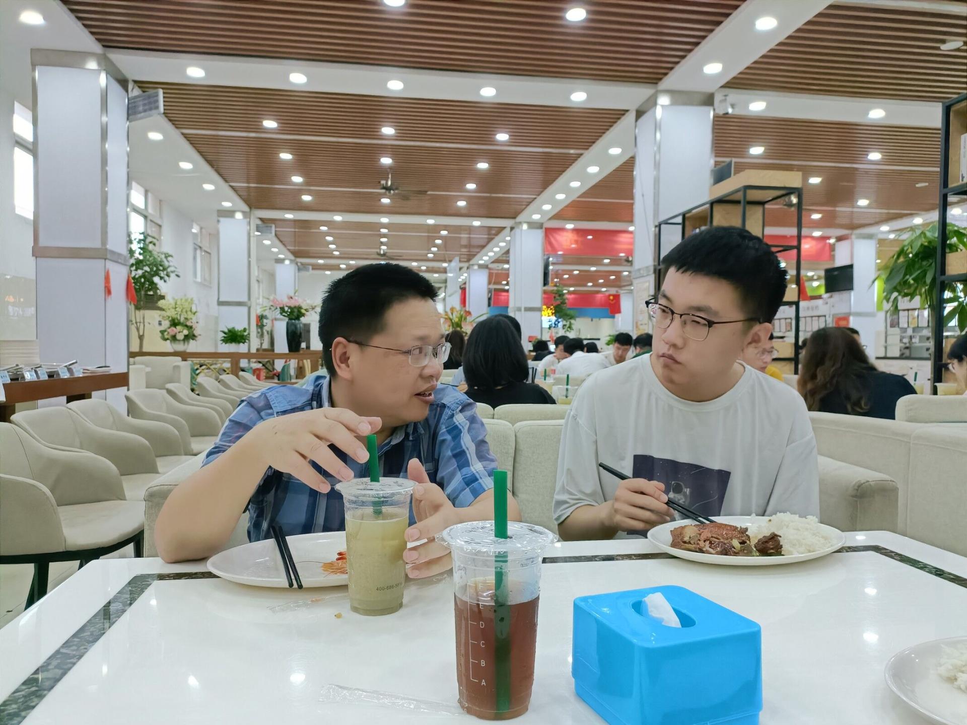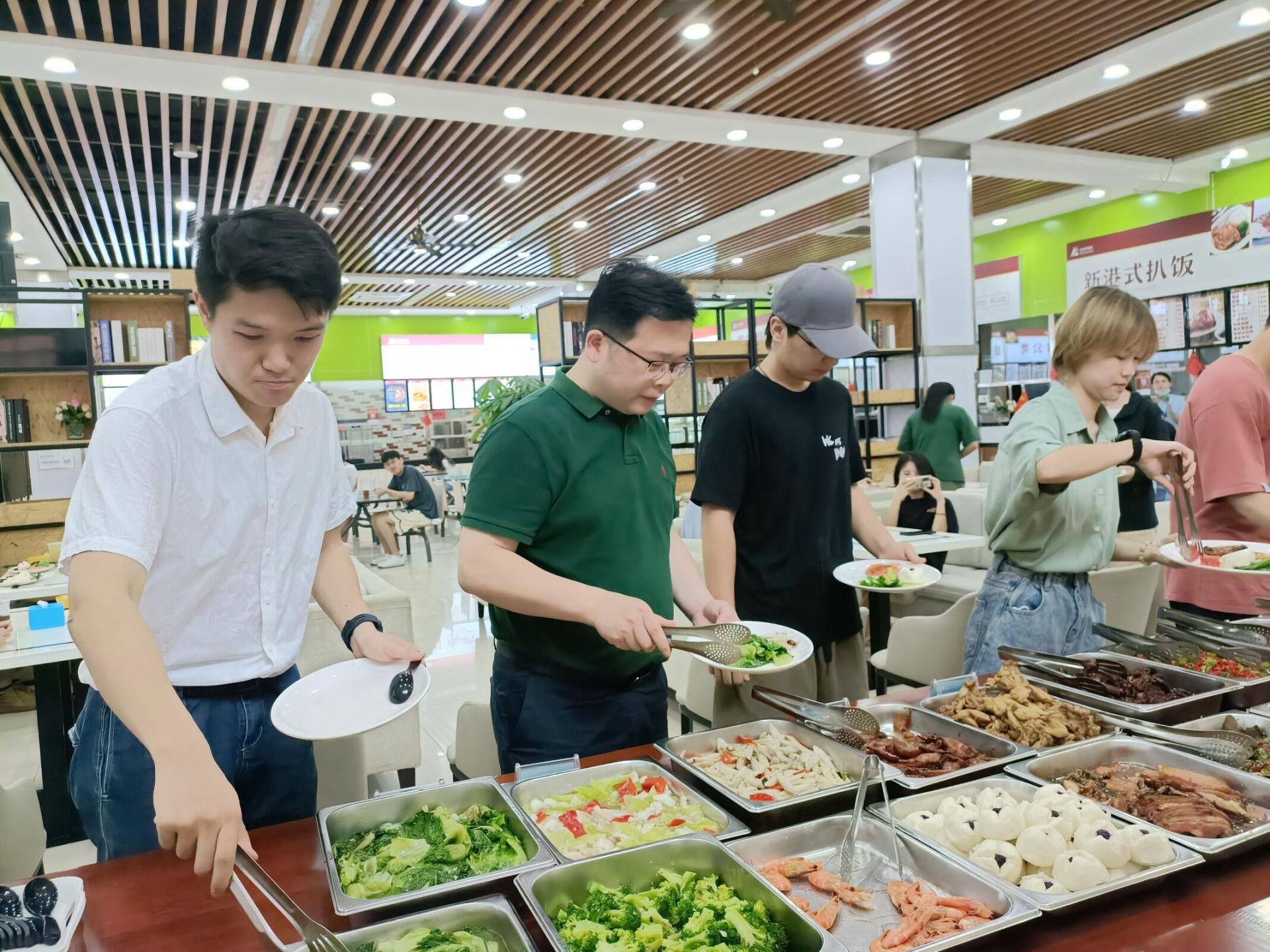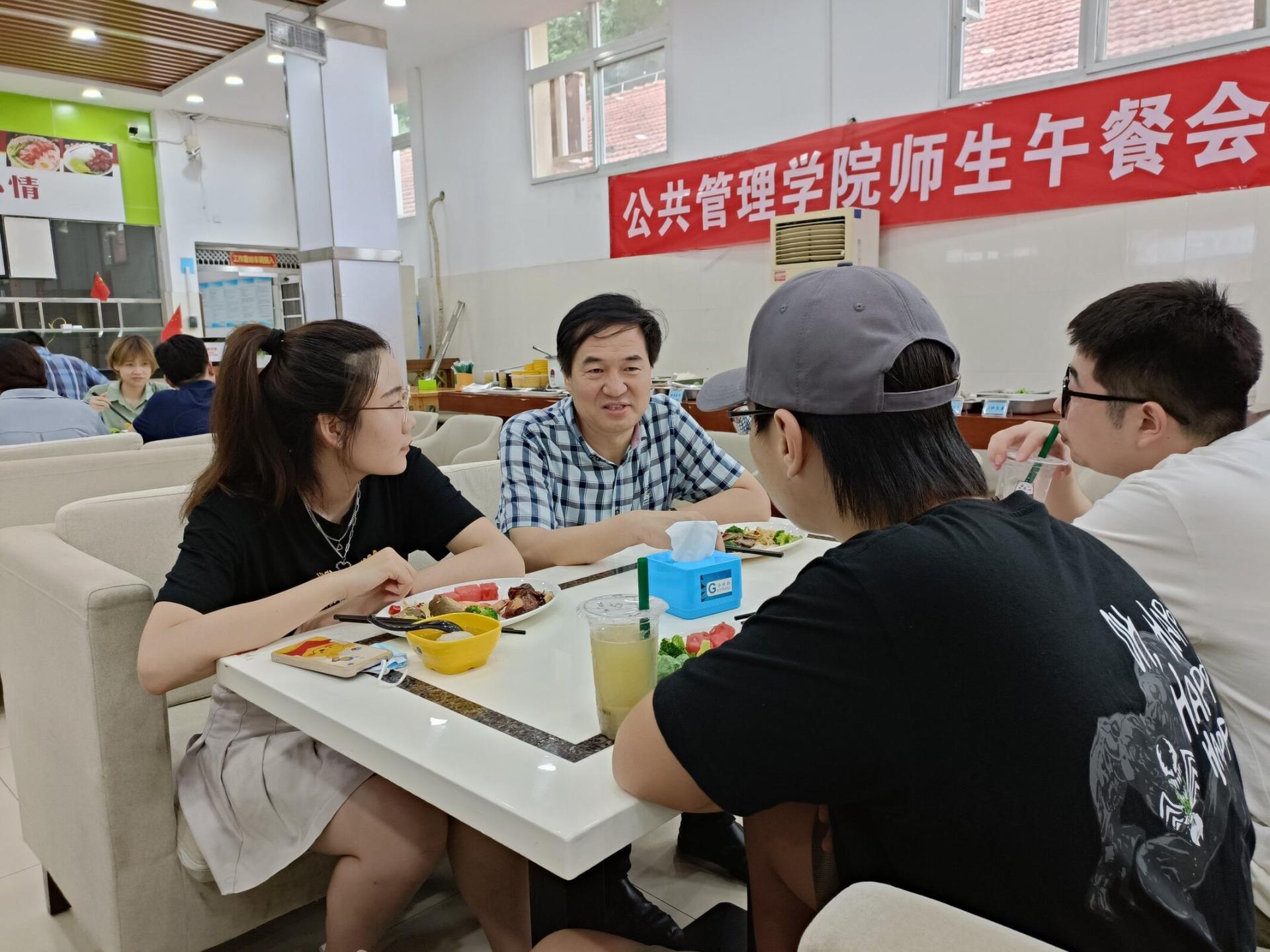 为进一步促进师生交流,贯彻落实《党员干部下基层察民情解民忧暖民心活动实施方案》,公司于6月24日中午在北区食堂二楼举办太阳成集团tyc234cc主页师生午餐会。公司党委书记张宽裕,经理胡守庚,副经理龚健、王忠、朱江洪,党委副书记龚丽,土地资源管理系方世明、周学武,法学系胡中华,公司综合办公室彭珂、李继杰等老师,学工组全体辅导员及各系本、硕、博员工代表参加本次午餐会。午餐会饭菜由北区饮食服务中心提供。