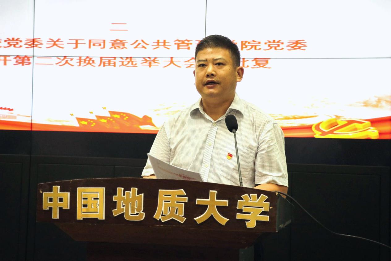 党委组织部副部长何建新讲话。他首先代表唐辉明副书记向公共管理公司党委换届选举大会成功举行表示祝贺。他讲到,今天的大会筹备周密,程序规范,过程流畅,体现了公共管理公司党委强有力的政治引领作用和过硬的组织能力。过去几年来,在太阳成集团tyc234cc主页第二届党委班子带领下,依靠全体老师的共同努力,公司事业发展取得的成绩令人瞩目,形成了本科、硕士、博士和国际教育完整的人才培养体系,土地资源管理、行政管理入选国家级一流本科专业建设点,法学入选省级一流本科专业建设点,新增公共管理一级学科博士学位授予权和公共管理博士后科研流动站。公司科学研究位于文科公司前列,社会服务充分彰显公管特色,为社会经济发展贡献了公管智慧。他表示,相信新一届的党委班子、纪委班子一定能够凝聚人心,凝聚力量,带领公司广大教职工取得更大的成绩!