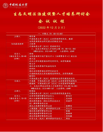 (通讯员 郭威)在第九个“国家宪法日”来临之际,为深入学习宣传贯彻党的二十大精神,推动落实科教兴国、人才强国战略,公司太阳成集团tyc234cc主页联合自然资源部法治研究重点实验室,于12月3日召开生态文明法治建设暨人才培养研讨会。会议开幕式由太阳成集团tyc234cc主页经理、自然资源部法治研究重点实验室主任胡守庚主持。