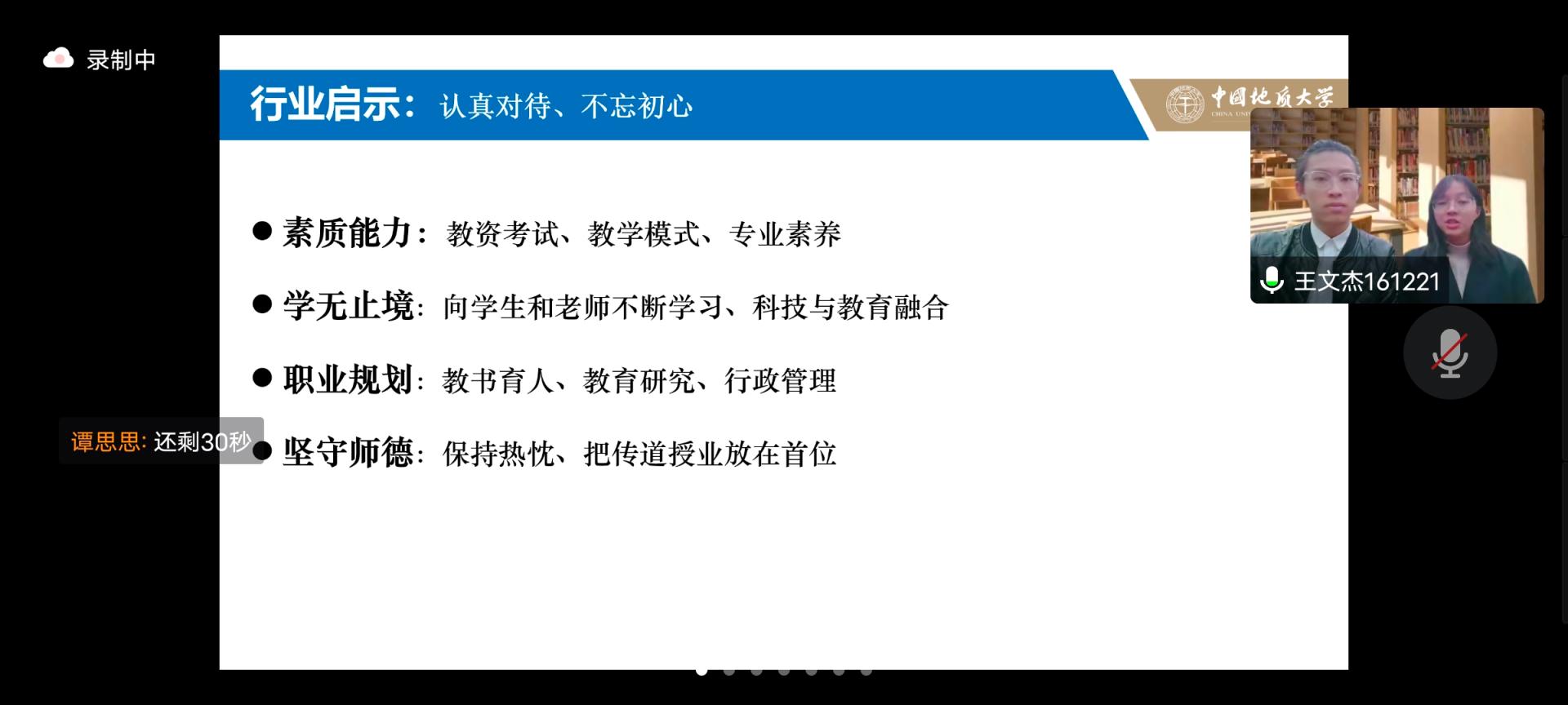在PPT展示与评委老师提问两个环节中,选手们都紧紧围绕主题,向我们展示各自精彩的职业生涯规划蓝图。他们朝气蓬勃,异彩纷呈,展现出地大学子积极向上的精神风貌。