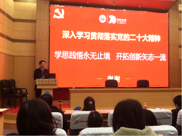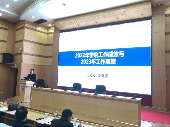 会议分为四个阶段。第一阶段由经理胡守庚报告2022年公司工作成效及2023年工作展望。他讲到,2022年是公共管理学科跨越式发展和法学学科高质量发展的关键时期,公司各项事业取得长足进步。他从公共管理学科发展的十大关键入手,围绕公司“十四五”发展目标,阐释了公司2023年工作思路、计划和目标,提出公司要加强目标管理,进行公司绩效管理改革,要坚持创新驱动,提升教师创新能力,坚持开放合作,汇聚学科发展新动力,坚持推进有组织创新构建公司发展新格局。
