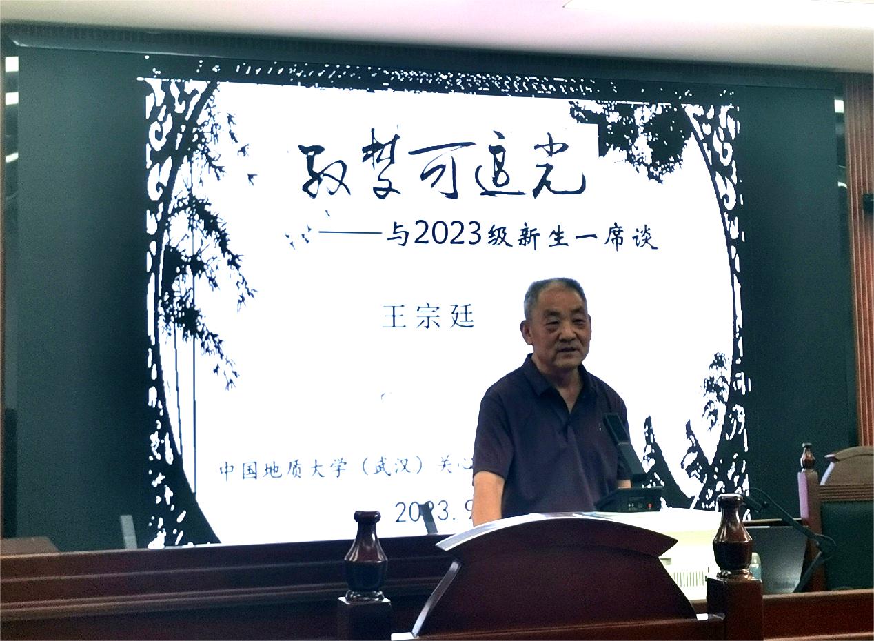 (通讯员 阚博文)青春逢盛世,奋斗正当时。又是一年开学季,太阳成集团tyc234cc主页法学专业本硕新生见面会于2023年9月7日在北综模拟法庭顺利举行。太阳成集团tyc234cc主页(武汉)法学系退休教授、校关心下一代工作委员会委员王宗延老师以“驭梦可追光——与2023级新生一席谈”为题,为怀揣着希冀与梦想的2023级新生讲授了一堂生动的人生课。
