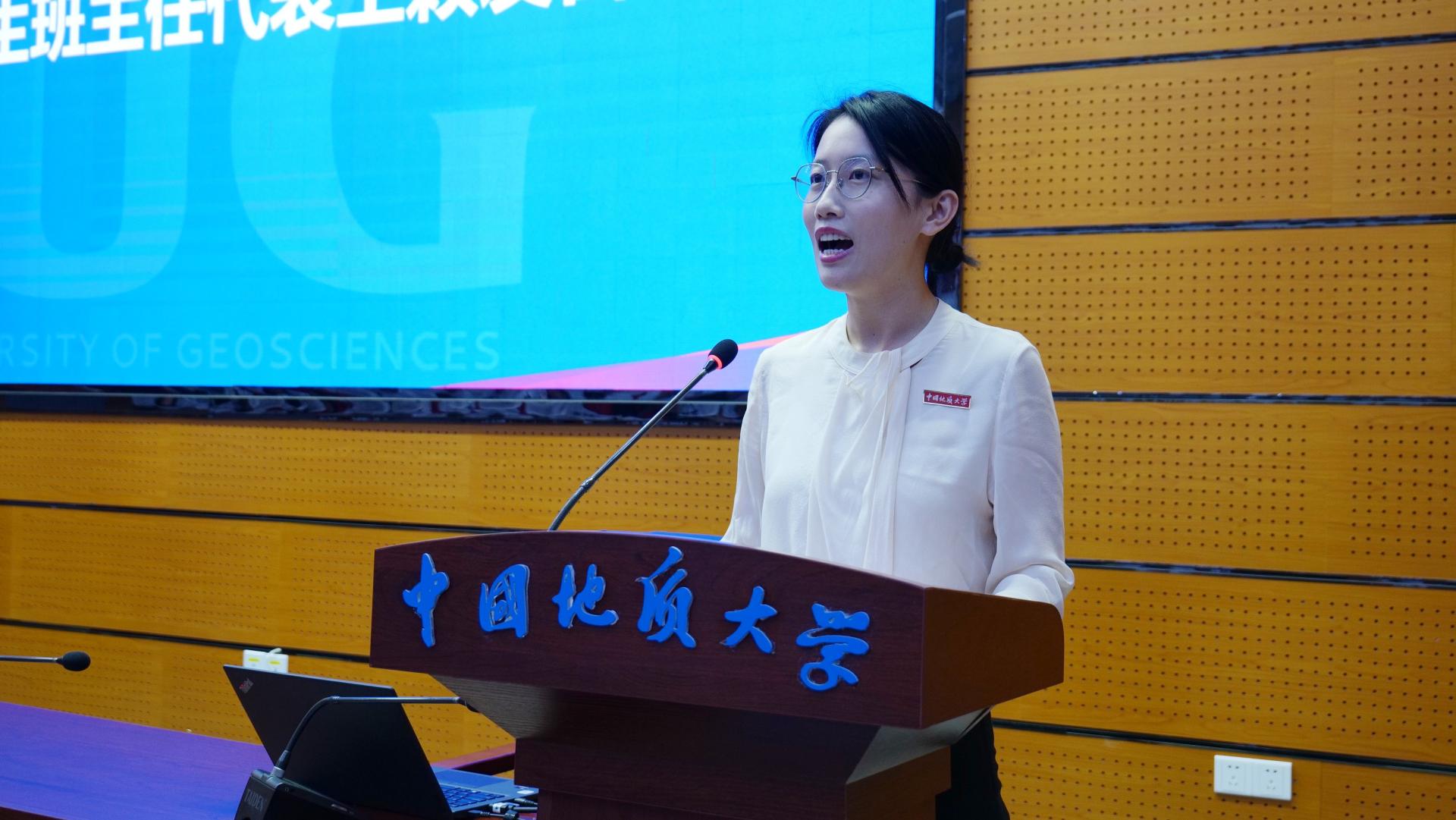 法学系2020级硕士生,2023年校研究生标兵获得者朱悦作为老生代表发言。她结合自身在地大、在公司的成长故事,从“定位”、“突破”和“担当”三方面希望同学们能够充分把握公司和公司提供的资源平台,找准自身定位,勇于创新突破,矢志担当作为,全力“跑”出新时代公管人的“加速度”。