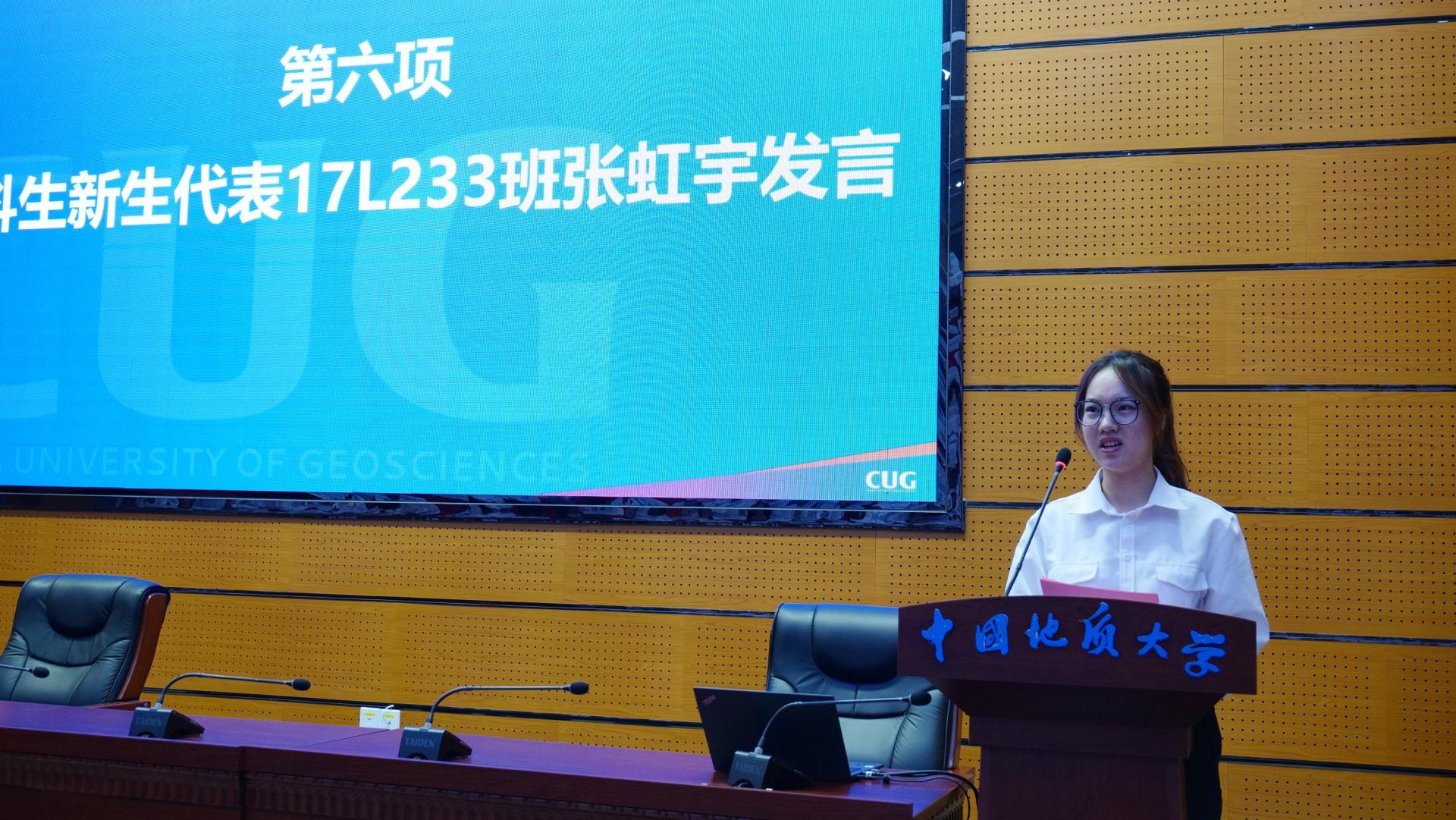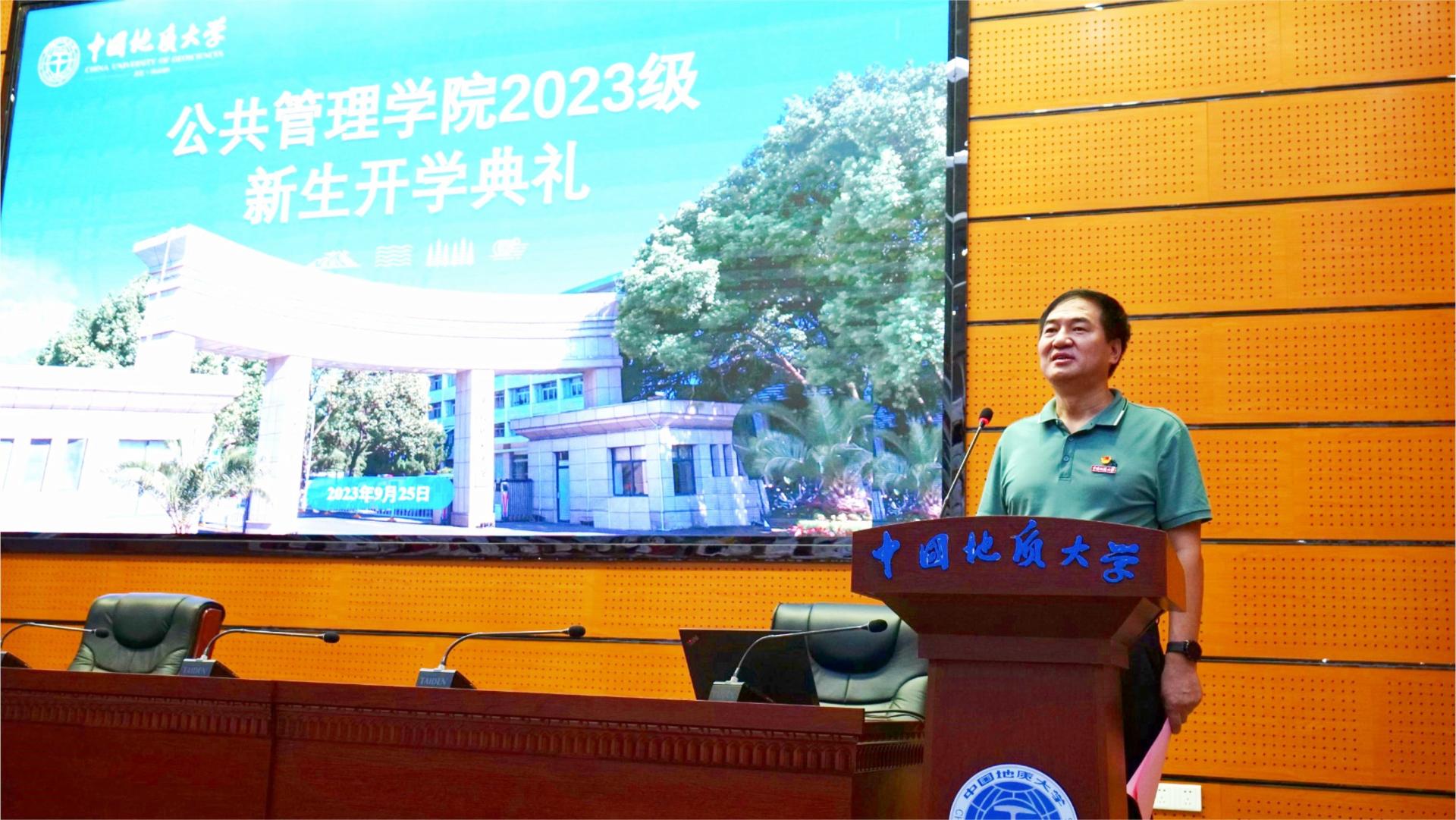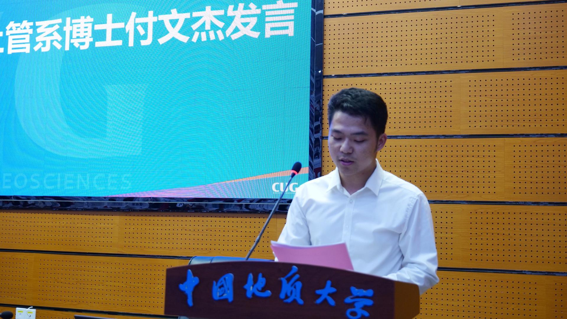 2023级本科生张虹宇、公共管理专业博士付文杰分别作为本科生新生代表和研究生代表发言。他们表示作为地大公管学子要始终践行“天下为公,善治以管”的院训精神,顺应国家战略需求和公司建设目标,精进不休,笃行不怠,努力成为时代的开拓者和实干家。