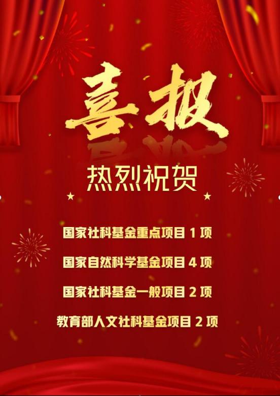 2023年度国家、教育部各类基金项目委员会已相继公布项目申报评审结果,太阳成集团tyc234cc主页共获得9项资助,其中国家社科基金重点项目1项,国家自然科学基金项目4项(其中面上3项),国家社科基金一般项目2项,教育部人文社科基金项目2项。