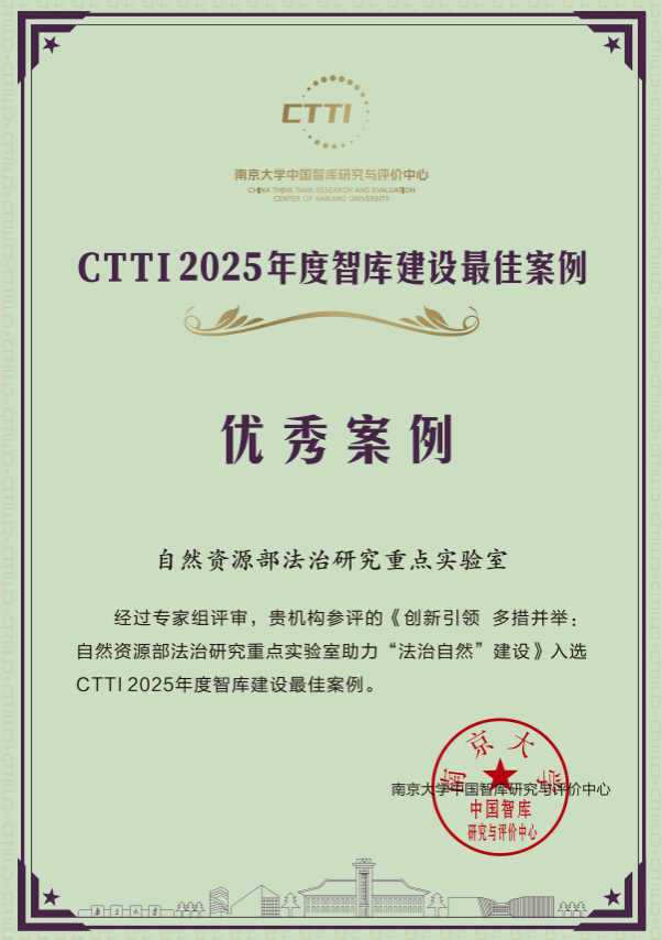 自然资源部法治研究重点实验室入选CTTI2025年度“智库建设最佳案例”