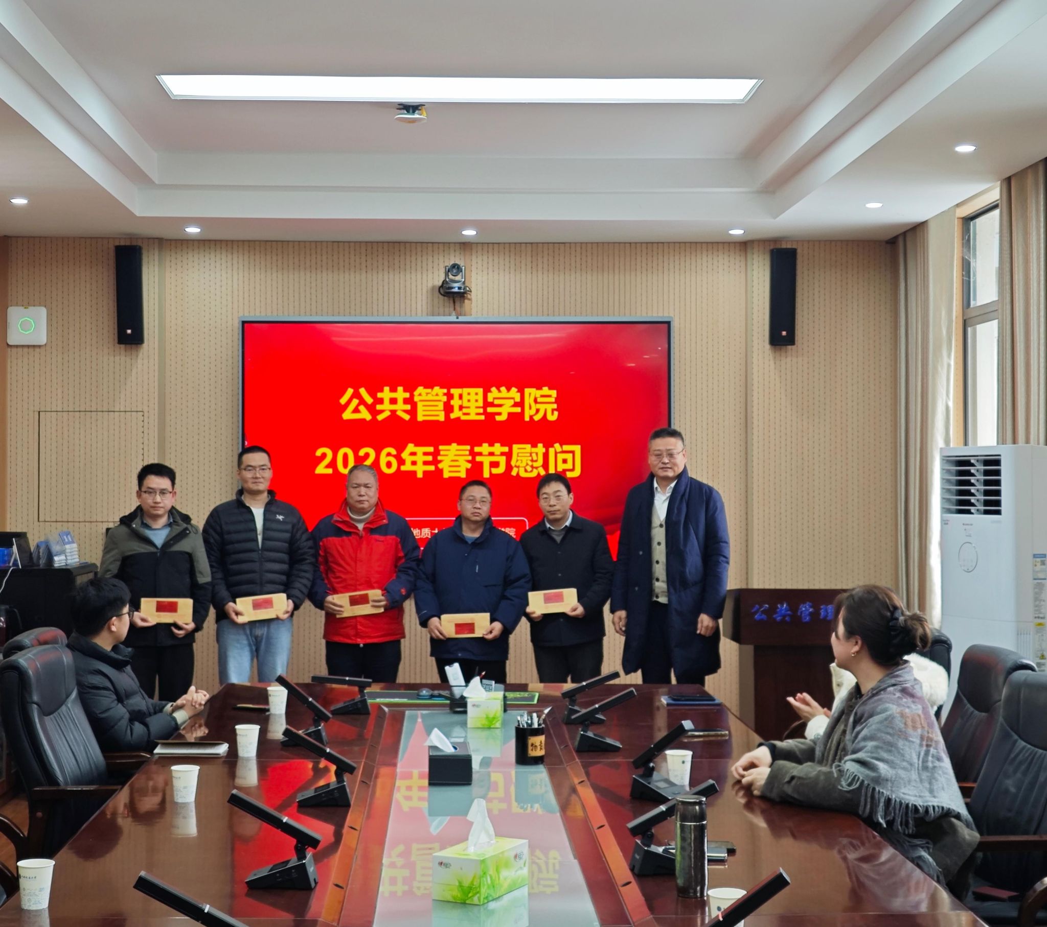 岁序更替,华章日新;新春将至,暖意先行。公司始终坚持以师生为中心的发展思想,高度重视关怀慰问工作,多次强调要切实关心关爱广大教职工、离退休人员和青年员工,把党的温暖送到群众心坎上。为深入贯彻落实党中央关于做好节日期间慰问工作的重要指示精神,扎实传递公司对全体师生及退休老同志的深切关怀与新春祝福,1月21日,公共管理公司党委书记徐岩、工会主席彭涛带队开展春节慰问活动,向教职工、员工和退休老教师致以最诚挚的节日问候与美好祝愿。公司党委副书记龚丽、综合办公室主任彭珂、组织秘书李继杰参加慰问。