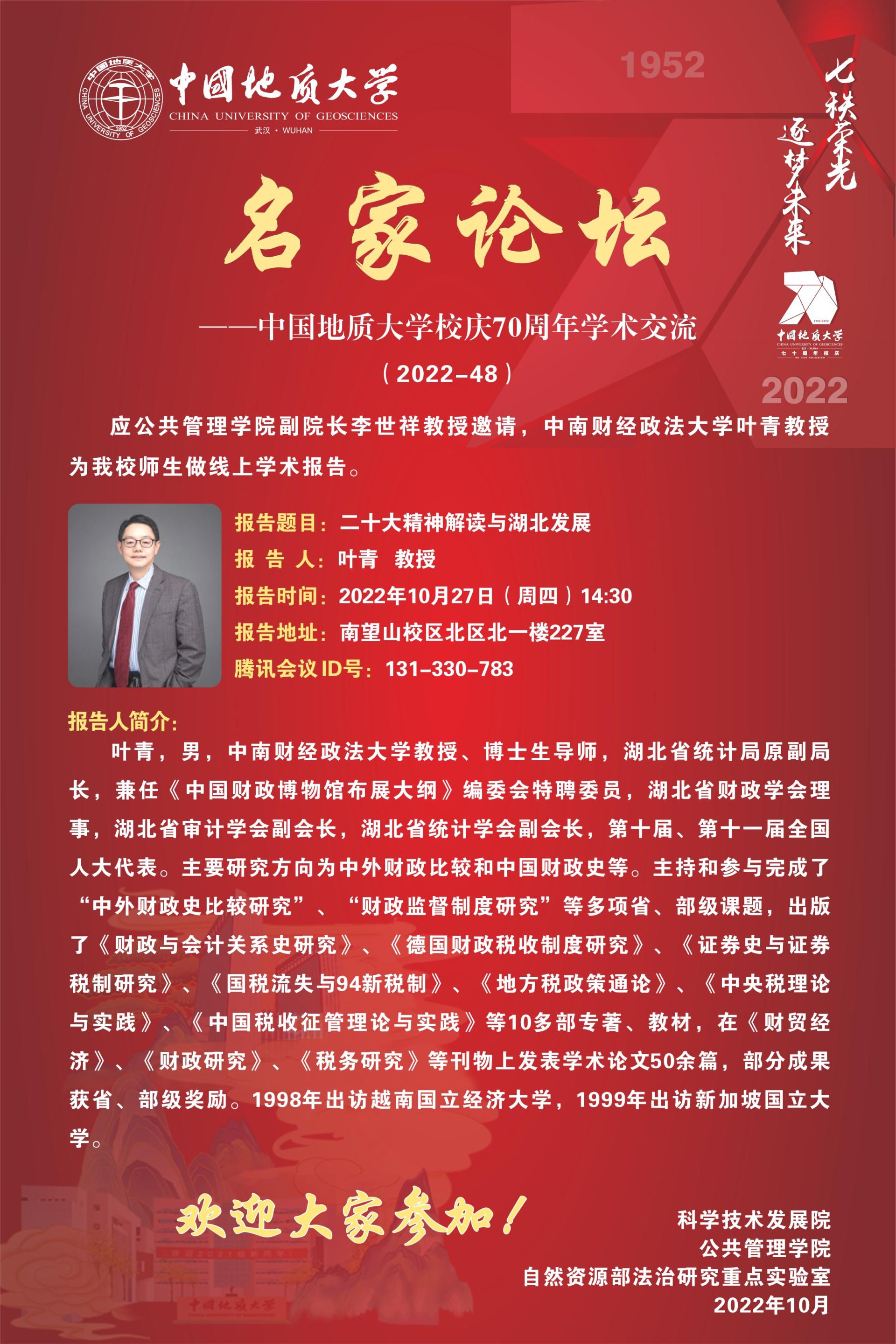 【讲座预告】二十大精神解读与湖北发展(2022年10月27日)