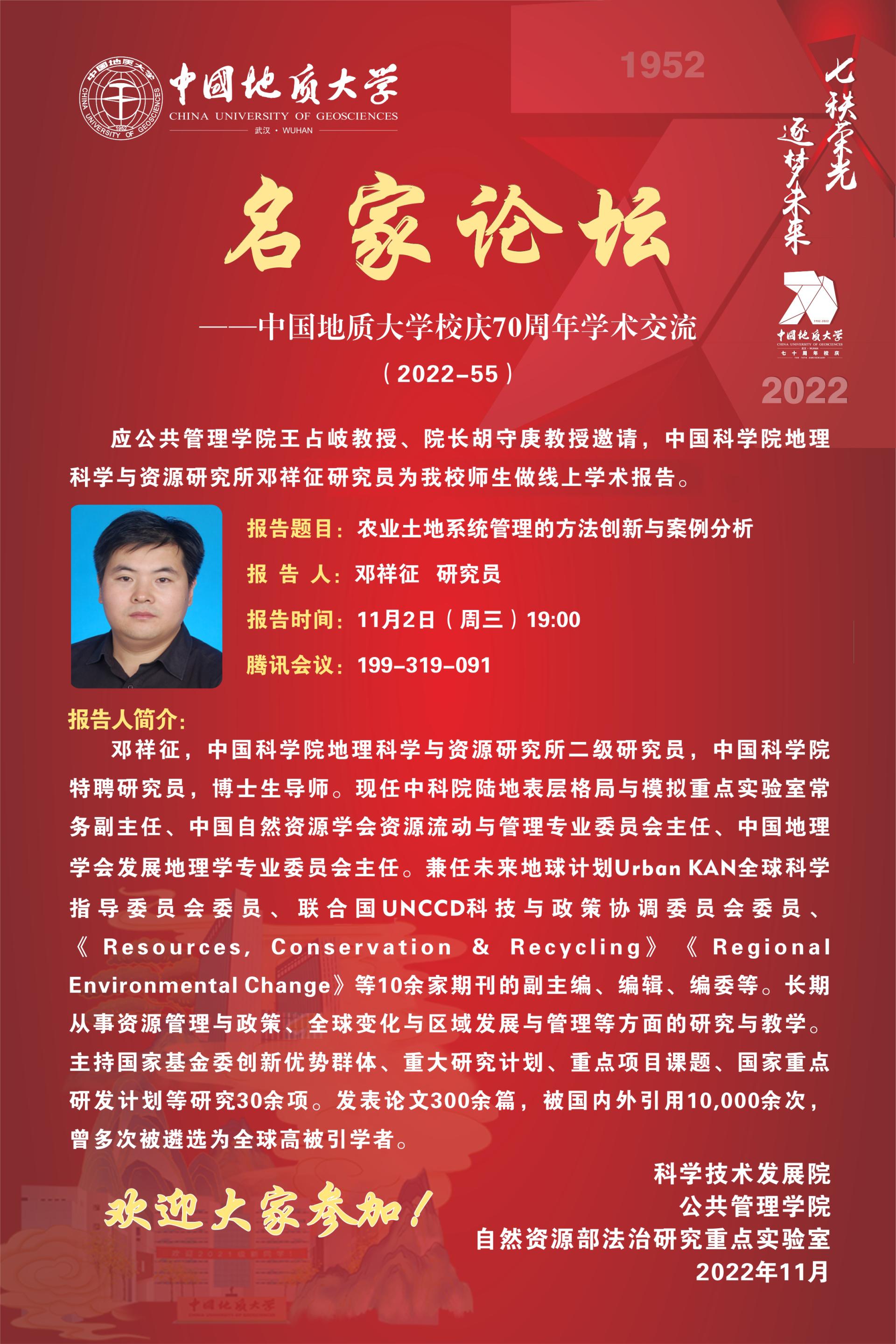 【讲座预告】农业土地系统管理的方法创新与案例分析(2022年11月2日)