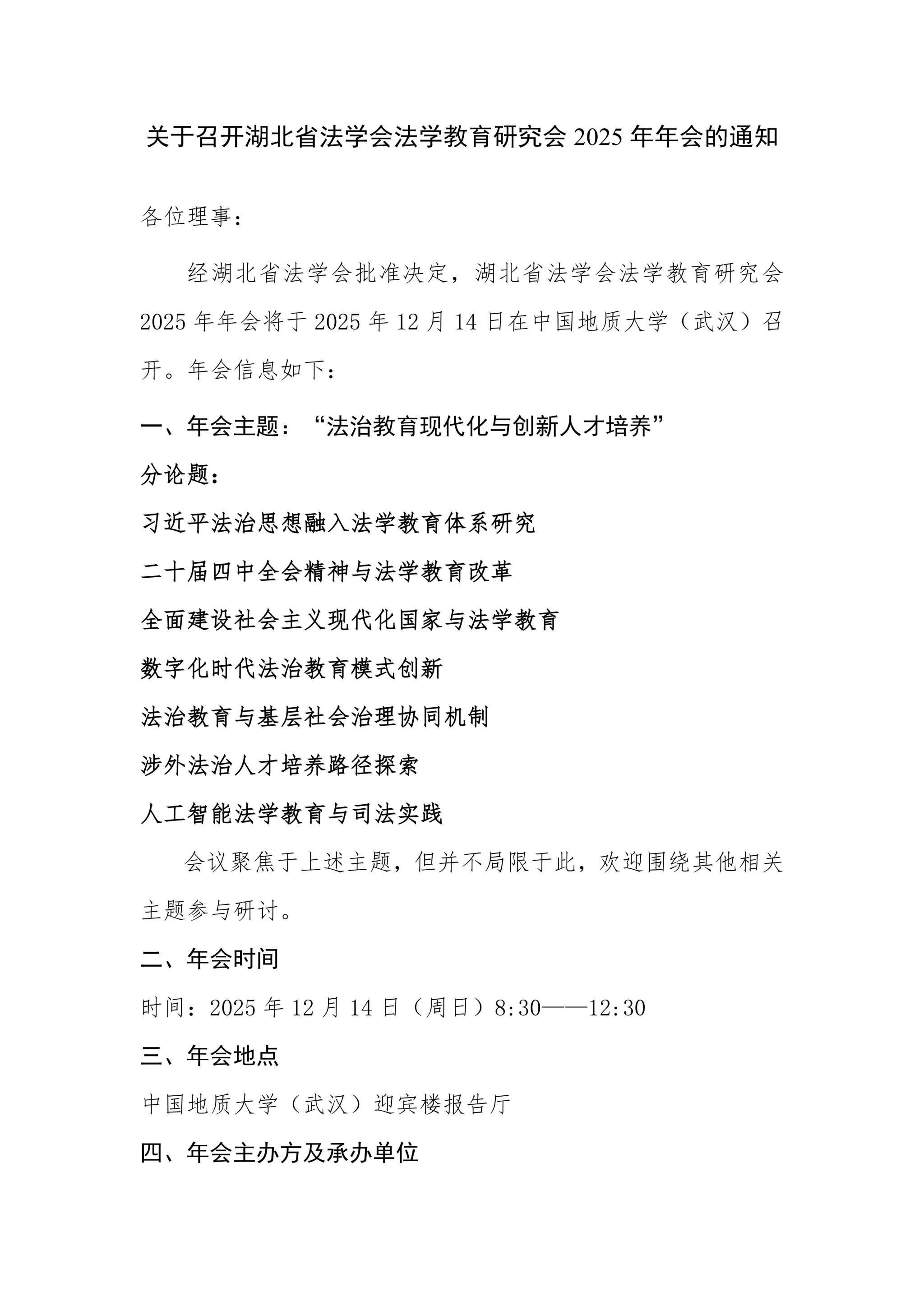 湖北省法学会法学教育研究会2025年年会通知.docx
