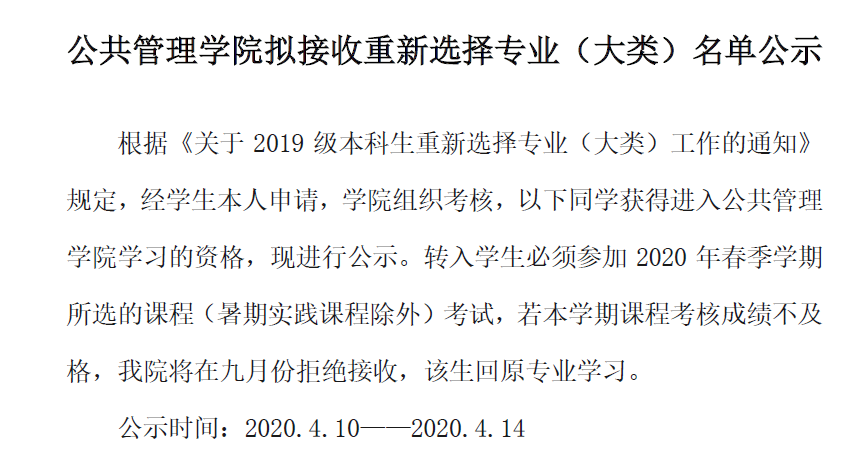 太阳成集团tyc234cc主页拟接收重新选择专业(大类)名单公示