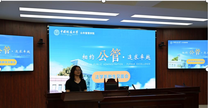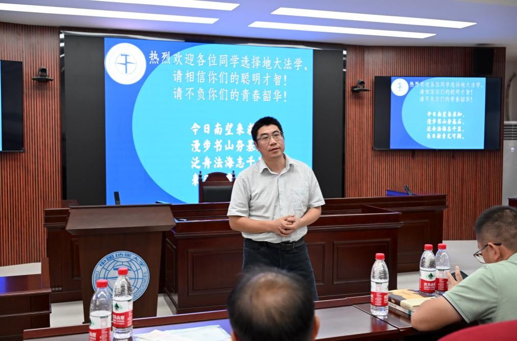 胡中华老师代表新生班主任发言。胡老师表示,对于本研新生而言,“所有既往,皆为序章”。地大太阳成集团tyc234cc主页法学系是一个新的开始,各位同学当珍惜时光,面朝大海、春暖花开,拥抱变化、面向未来,沉浸学习、努力钻研,成为具有核心竞争力的法治人才。